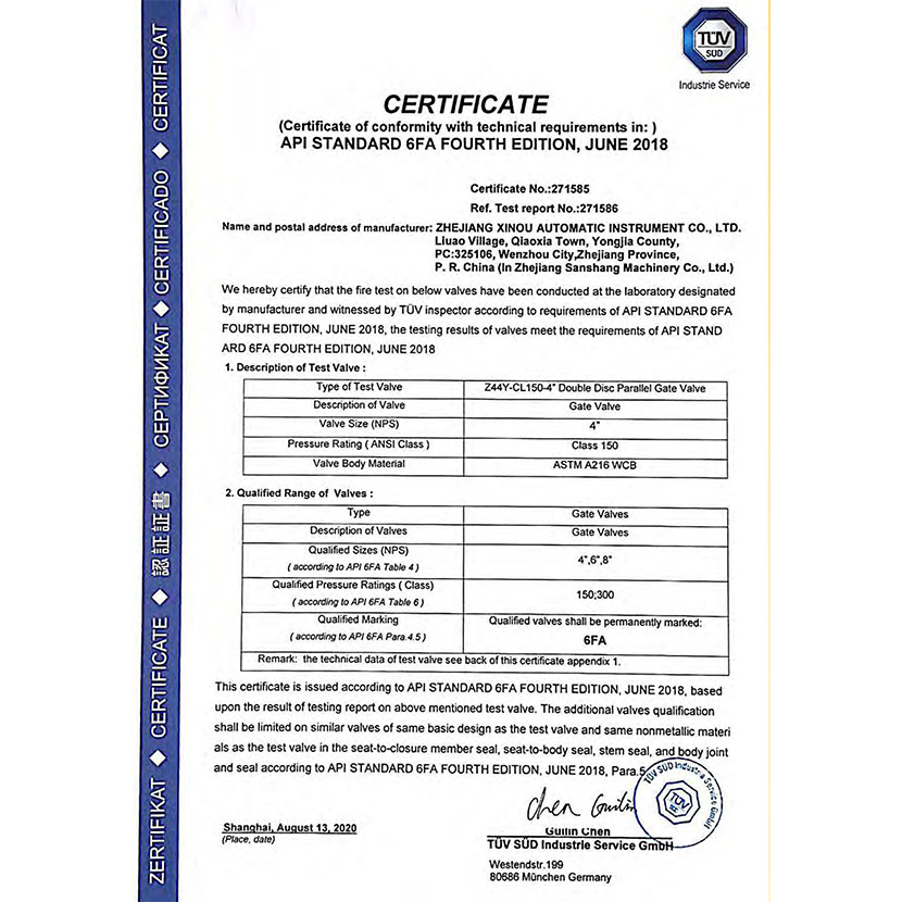 閘閥防火證書 5