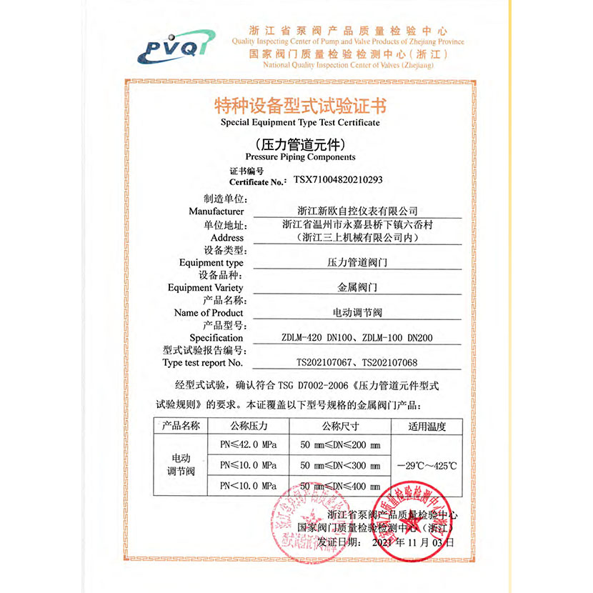 電動調(diào)節(jié)閥 型式試驗報告